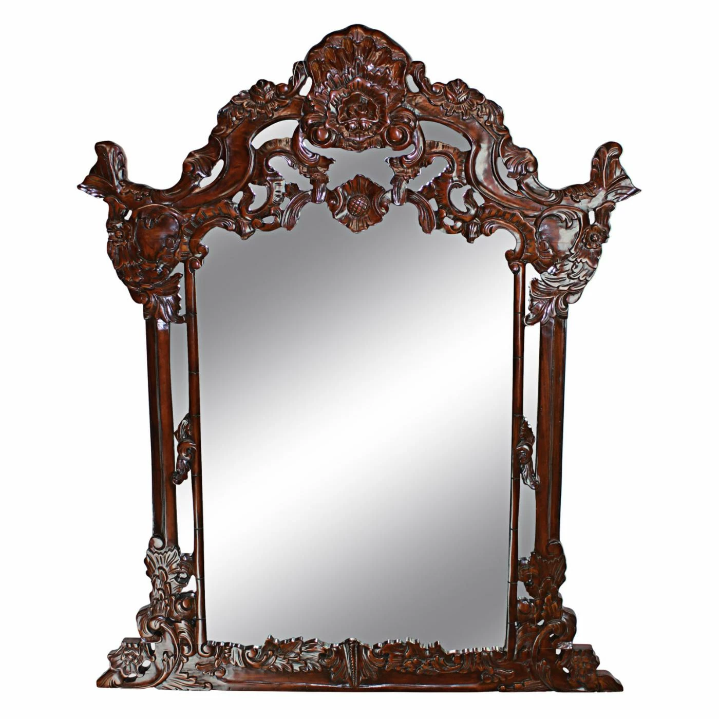Bring the grandeur of traditional Viennese design to your living room or entryway with the Design Toscano Hapsburg Mirror – 46.5W x 56H in.. The solid mahogany wood mirror features ornate scrollwork and scallop shell resin molding, giving it all of the grandeur of a genuine antique. A hand-applied finish enhances the aged quality of the piece. Wired on the back, the mirror is simple to hang upon arrival.