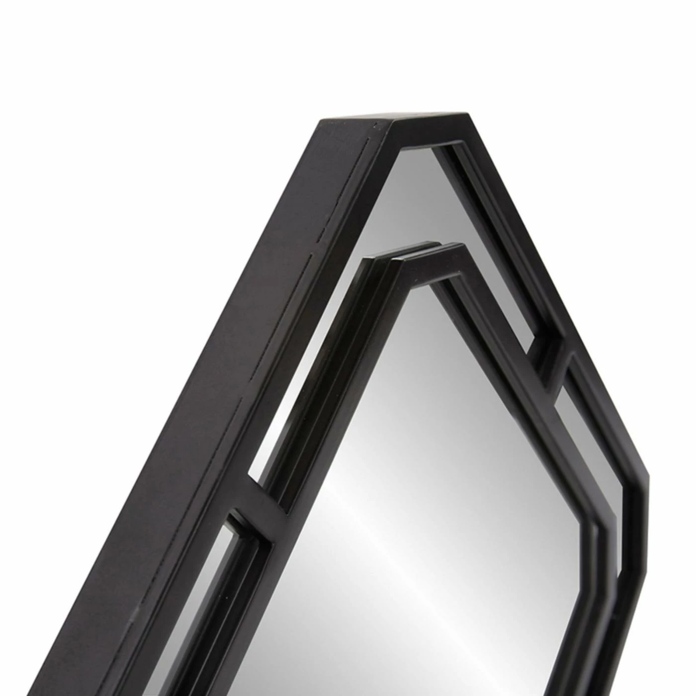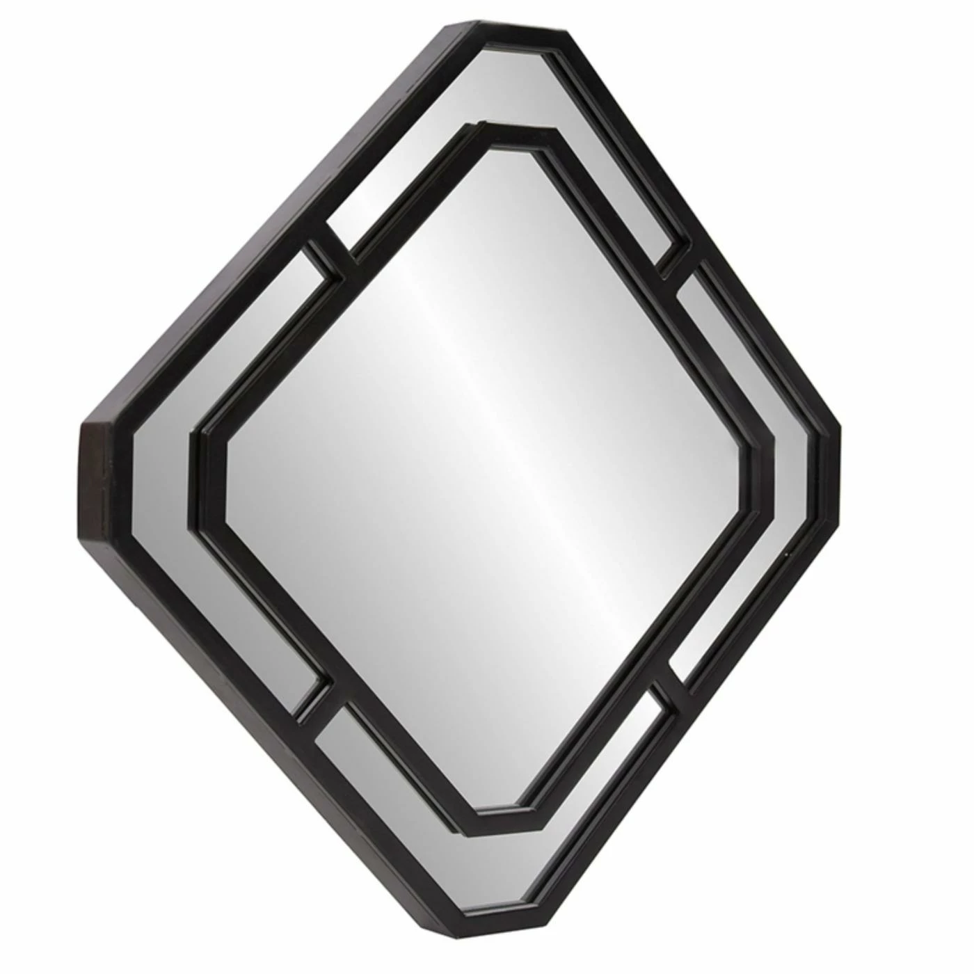 The Elizabeth Austin Dexter Mirror – 19W x 19H in. is the perfect size to sit above a vanity table or in the middle of your living room’s gallery wall. This diamond-shaped frame is made of matte black metal with a hand-applied finish. Hardware is pre-attached to the back for easy hanging.