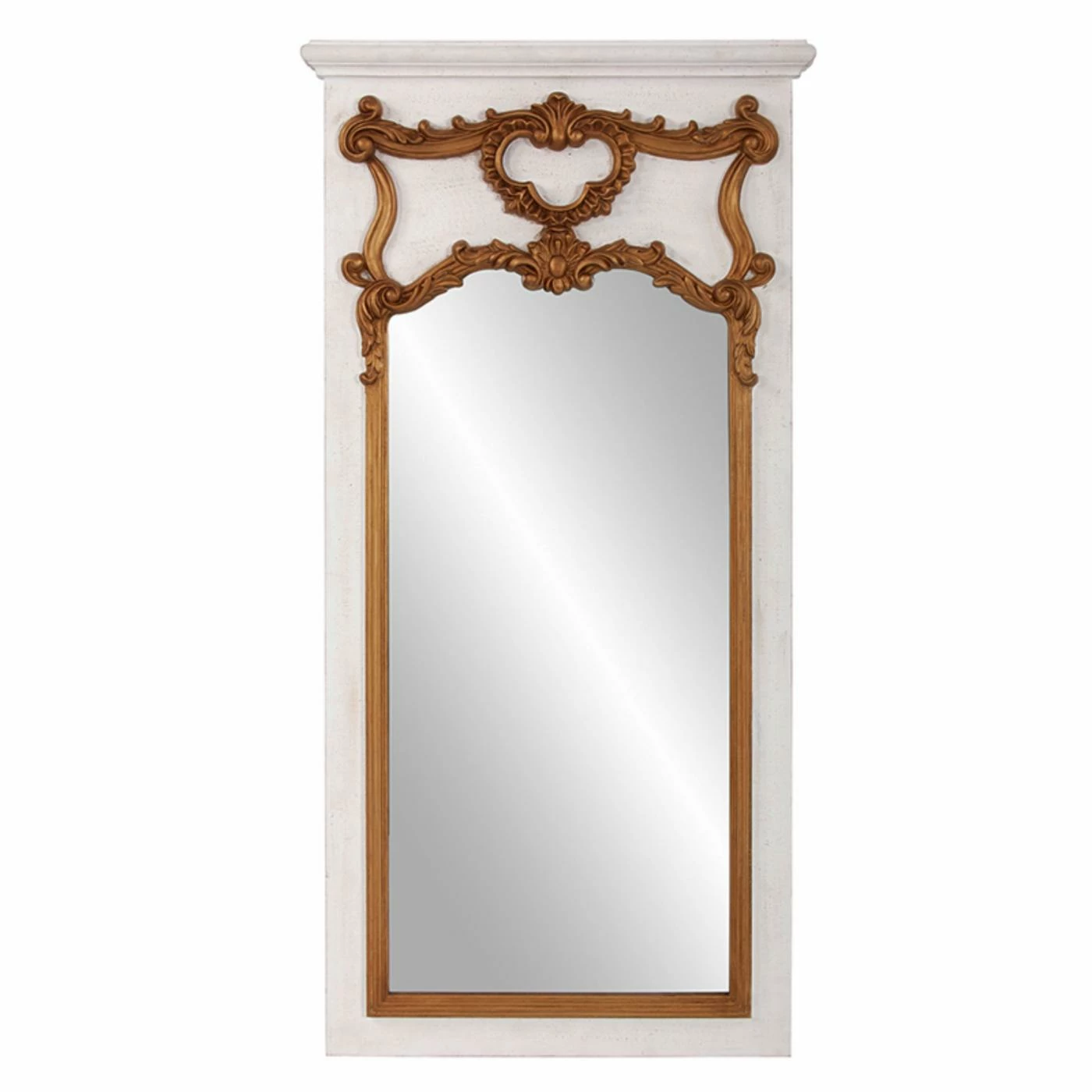 The Elizabeth Austin Herrington Mirror – 26W x 51H in. is a rectangular mirror in a frame featuring classical embellishments. The opulent designs are reminiscent of antique architecture. Hanging hardware is included.