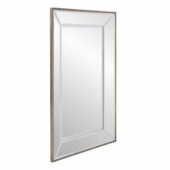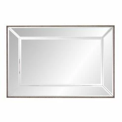 The Elizabeth Austin Roberto Vanity Mirror – 24W x 36H in.‘s champagne silver finish is hand applied to the frame’s beaded trim, guaranteeing extra attention to detail. This beveled wall mirror can hang horizontally or vertically, depending on what works best in your space.
