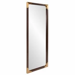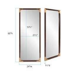 The Elizabeth Austin Rogers Dressing Mirror – 24W x 60H in. features an industrial look for your space. This full-length mirror is surrounded with a wood frame in a walnut finish. Each corner is accented with metal in gold. Hang it vertically or horizontally with the attached hardware.