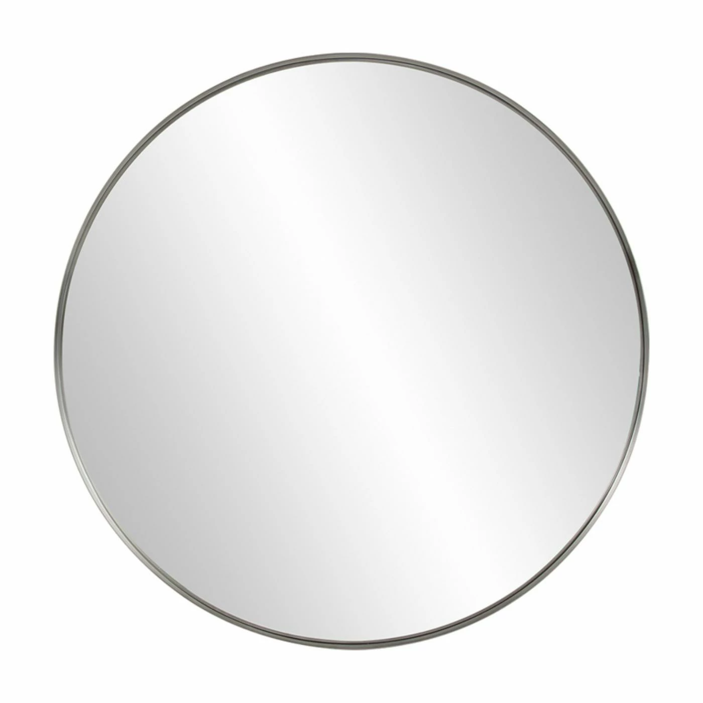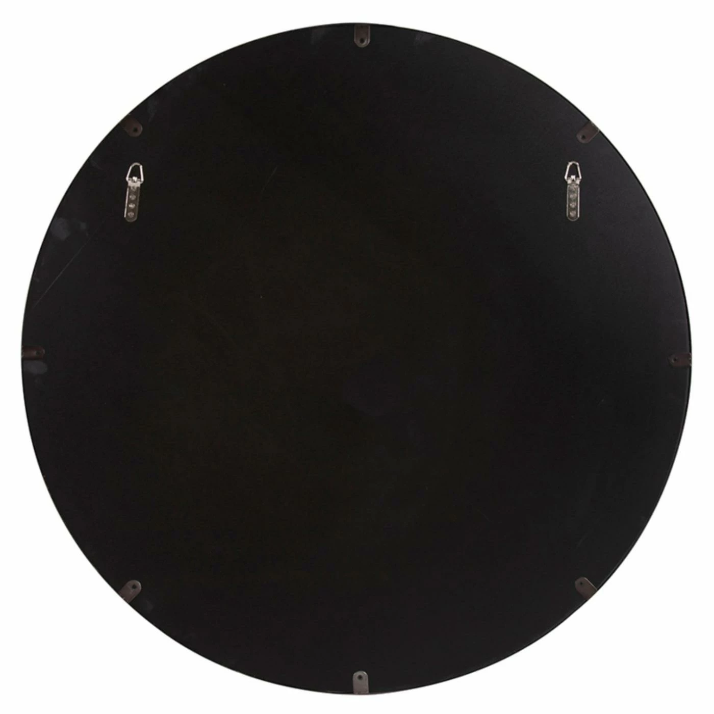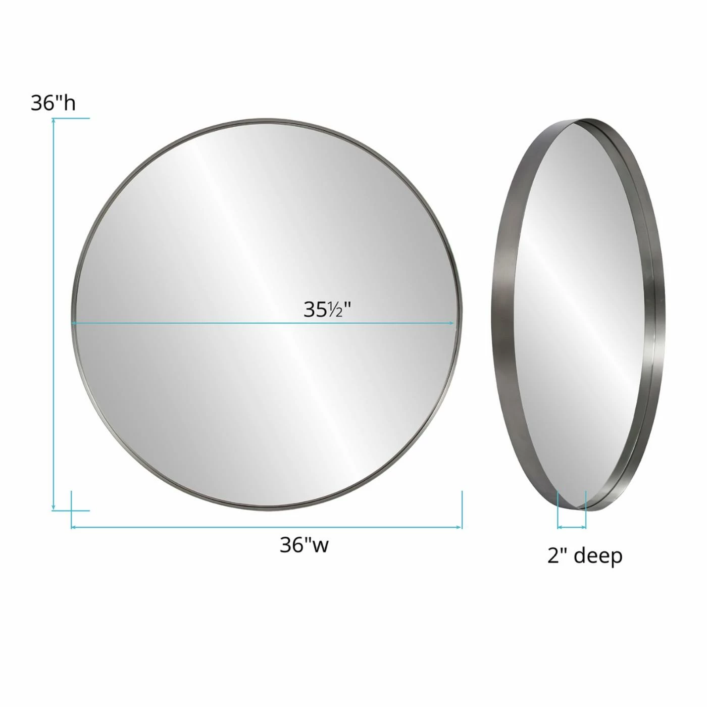 The Elizabeth Austin Steele Round Mirror – 36 diam. in. features a solid round shape. This mirror is crafted of glass and metal. Choose from the available finishes for a customized item. Hanging hardware is included.