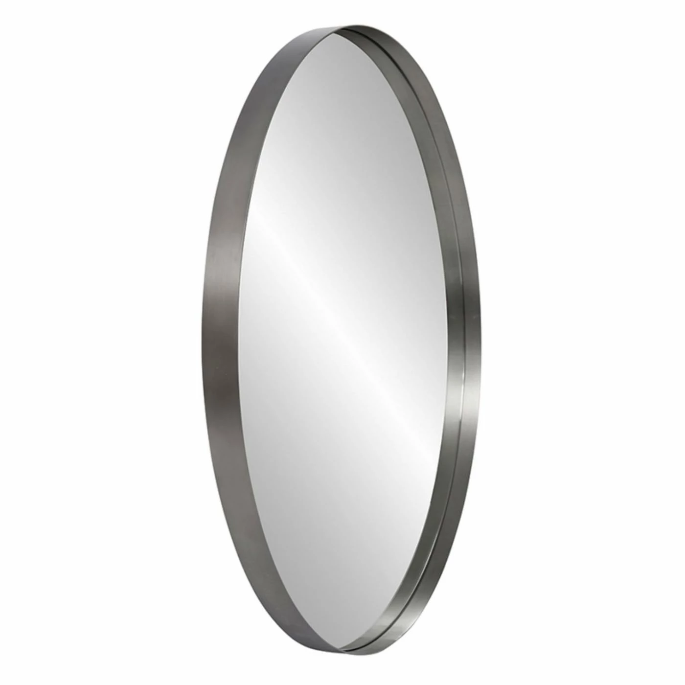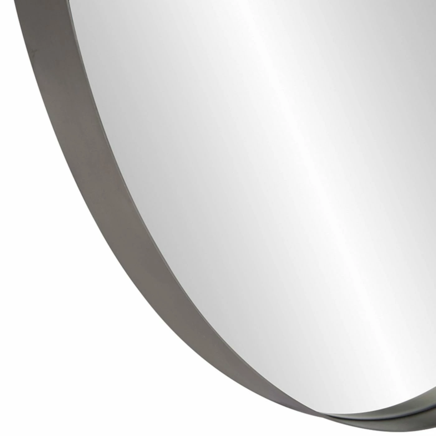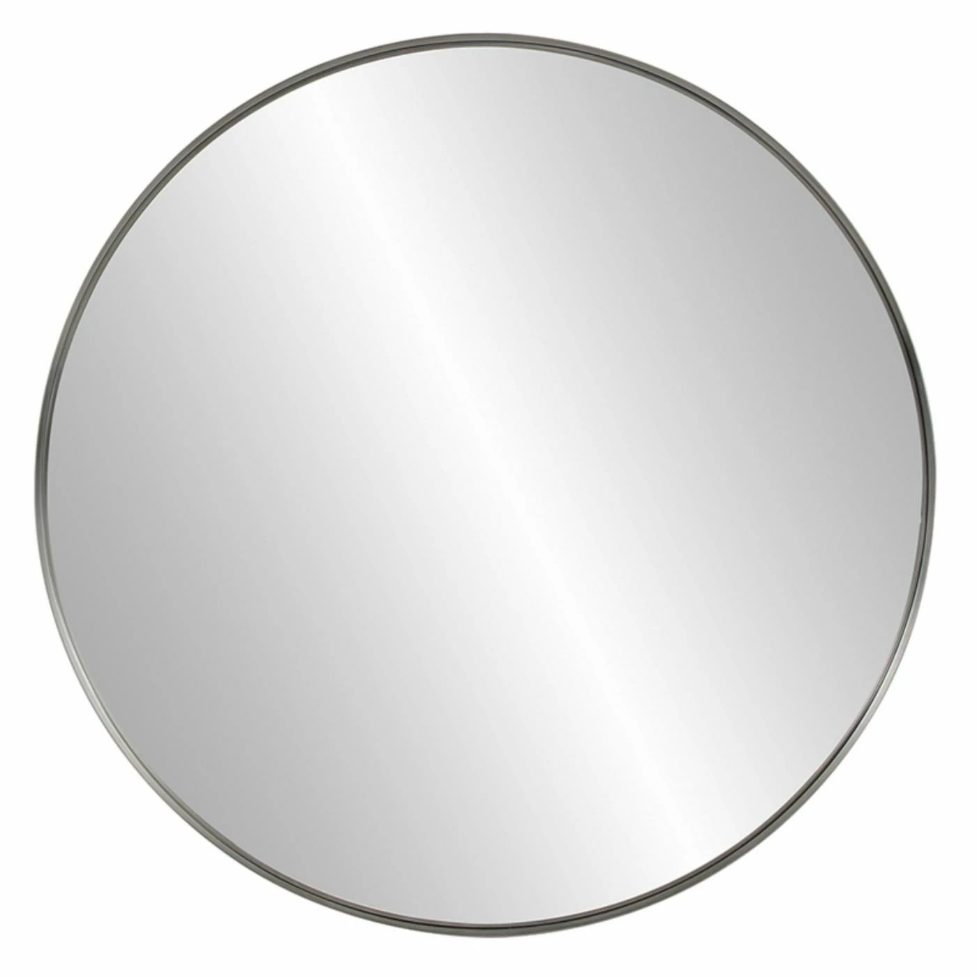 The Elizabeth Austin Steele Round Mirror – 36 diam. in. features a solid round shape. This mirror is crafted of glass and metal. Choose from the available finishes for a customized item. Hanging hardware is included.