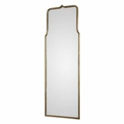 Curving detail along the top of the HN Home Anjuna Boho Antiqued Gold Mirror gives it an antique look that stands out in your space. The metal frame features an antiquated gold finish to add to the vintage feel. The glass is protected by a strong, structured backing of engineered wood.