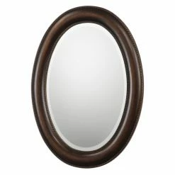 Top off your room with a touch of simple refinement with the HN Home Kenosha Transitional Oval Mirror – 22.45W x 29.45H. The dark engineered-wood frame features a bronzed finish, and two rose of bead detailing make this mirror a classic beauty. Add light and dimension to almost any space with this timeless accent mirror.