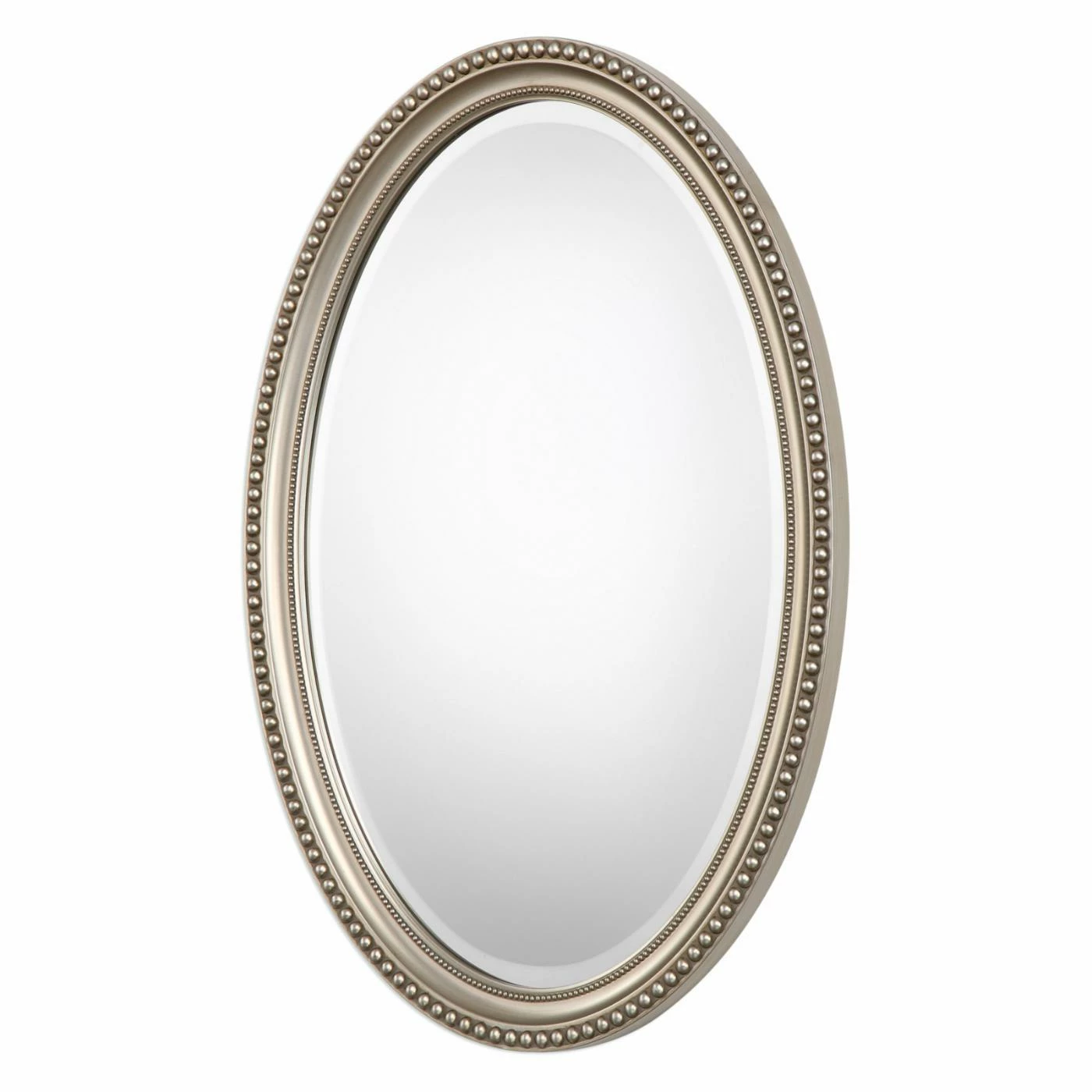 Bring style and sophistication to your room with the Magnolia Grove Elnora Oval Mirror – 22W x 32H. The striking beaded-detail border make this signature mirror the center of any dΓ©cor. Light distressing on the metallic frame give it the feel of a beloved antique. Finish any space with this elegant, updated accent mirror.