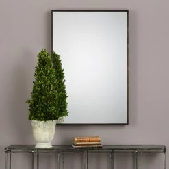 Add dimension and light to your room with the Magnolia Grove Razi Rectangle Mirror – 24W x 36H. Clean and streamlined, this simple mirror is an ideal accent for any dΓ©cor. A slender frame and flat-glass mirror surface lends this mirror an easy elegance. It is an simple, sophisticated addition to any room. Available in your choice of finish.