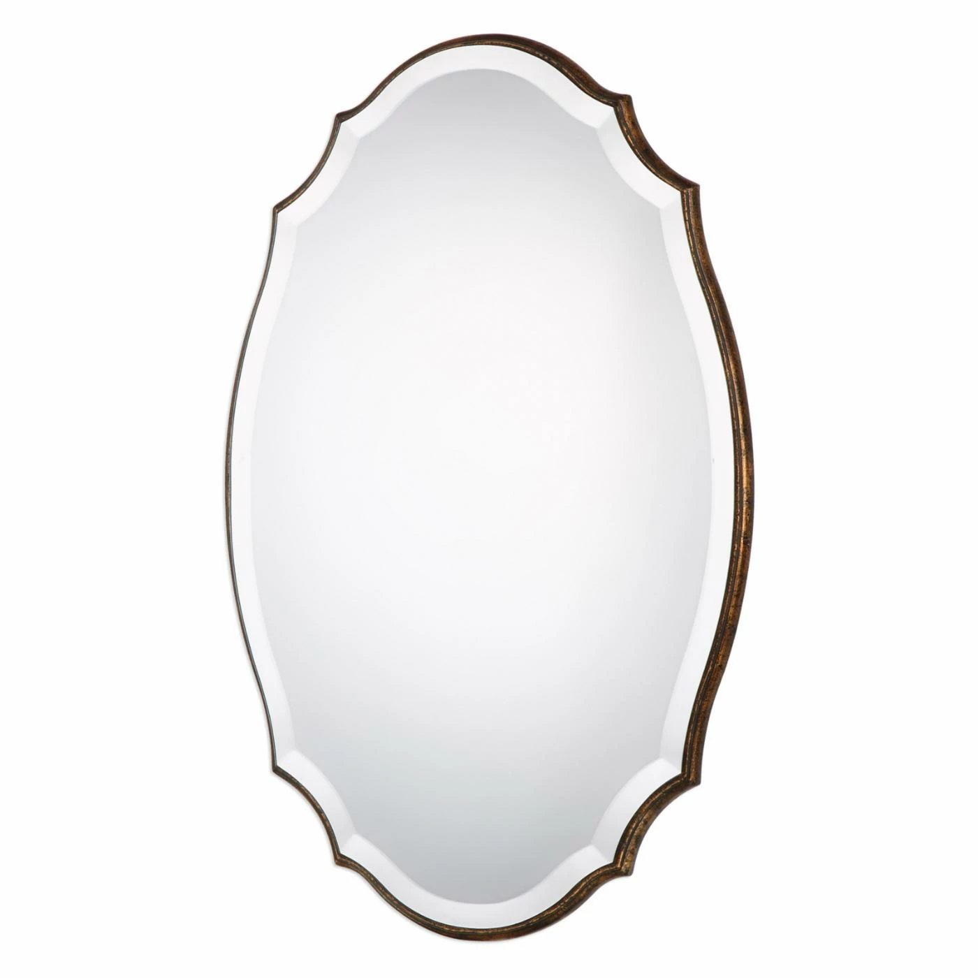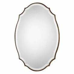 Get modern style and classic elegance with the Magnolia Grove Taelyn Oval Mirror – 20W x 30H. The sleek, scalloped-edge oval shape is a perfect addition to any dΓ©cor, traditional or contemporary. The slender wood frame is heavily antiqued with gold leaf, giving this mirror a vintage appeal. Add light and the impression of space to any room with this accent mirror.