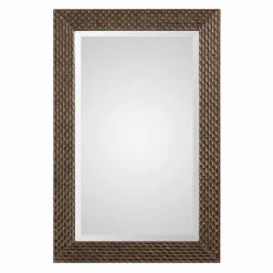 Make a strong decorating statement with the Magnolia Grove Veryln Rectangle Mirror – 24W x 36H. The striking honeycomb-textured frame features a bronzed engineered wood-grain finish. Clean, modern lines and beveled glass give this mirror a touch of sophistication. This accent mirror is sure to make an impression in any dΓ©cor.