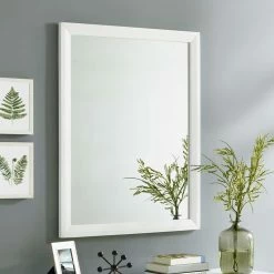 Emphasize some handsome mid-century minimalism in your bedroom or living room with the Modway Tracy Mirror in White – 31.5W x 39.5H in.. This rectangular mirror is designed for vertical hanging and comes with all the necessary mounting hardware. The frame is built from a combination of rubberwood solids and engineered wood. A bright, refreshing white finish tops the frame. The mirror surface is smooth and unbeveled. This product is covered by a manufacturer’s limted 1-year warranty against defects.
