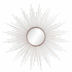 Add a sleek element to your space with the Nielsen Bainbridge Champagne Rays Sunburst Metal Framed Mirror – 36.5W x 36.5H in., made in a classic mid-century sunburst design. This round mirror features a metal frame and the sleek gold finish brings it a high-end finishing touch.