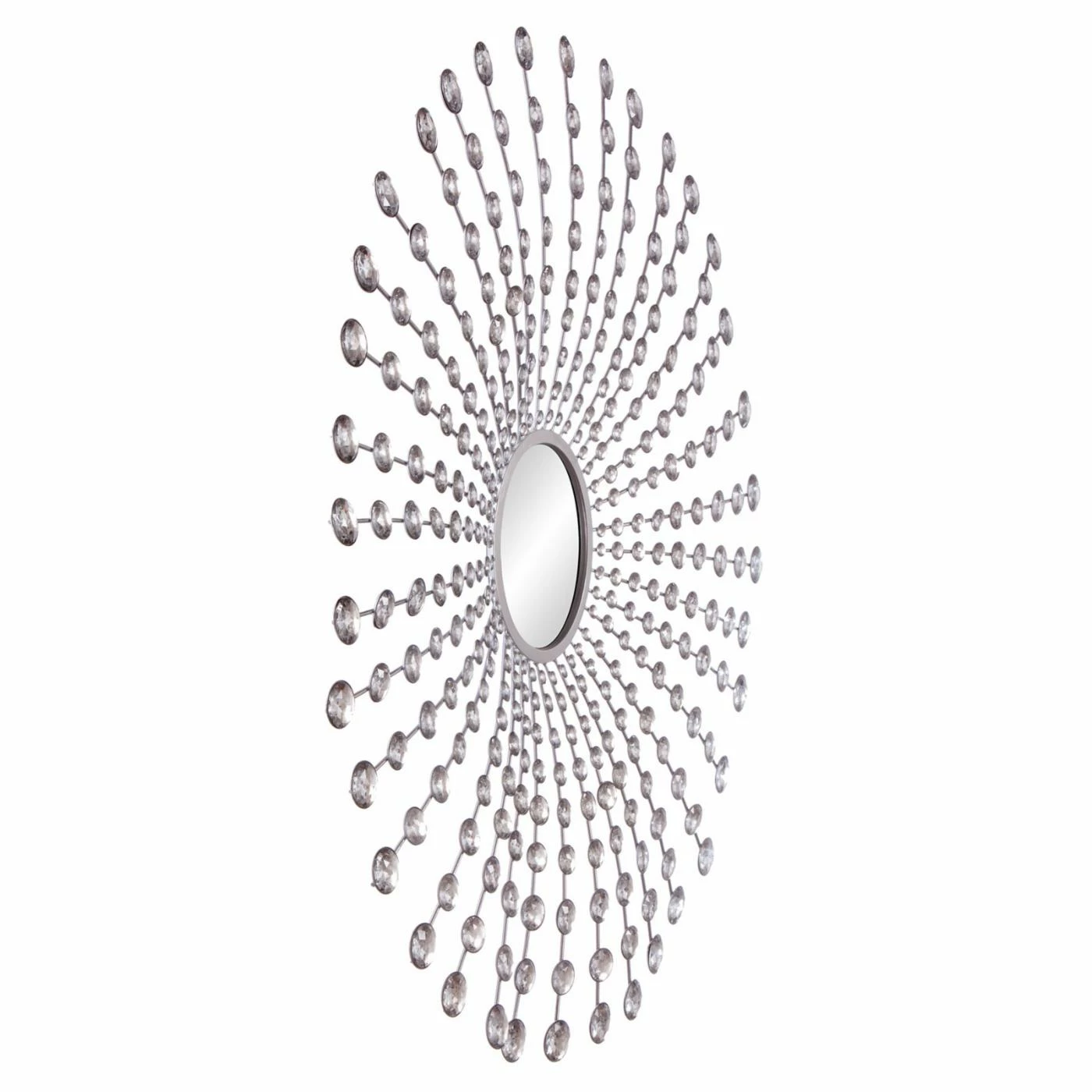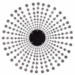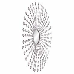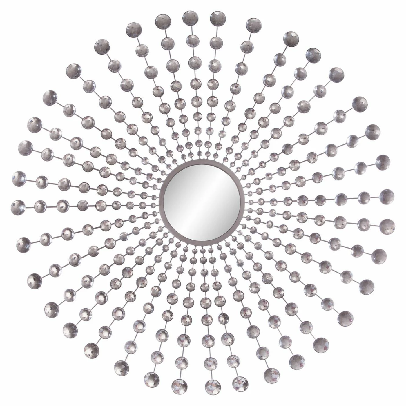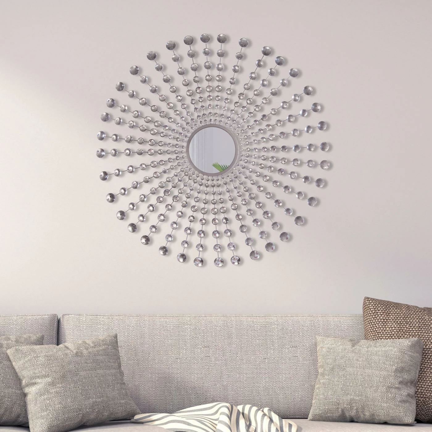 The Nielsen Bainbridge Jeweled Silver Round Starburst Mirror – 36.5W x 36.5H in. lends a luxe look to your home thanks to rows of shimmering rhinestones that extend out from its center. This ultra-modern home accessory features a round mirror in the center. The mod starburst design gives it a bold, contemporary look and feel.