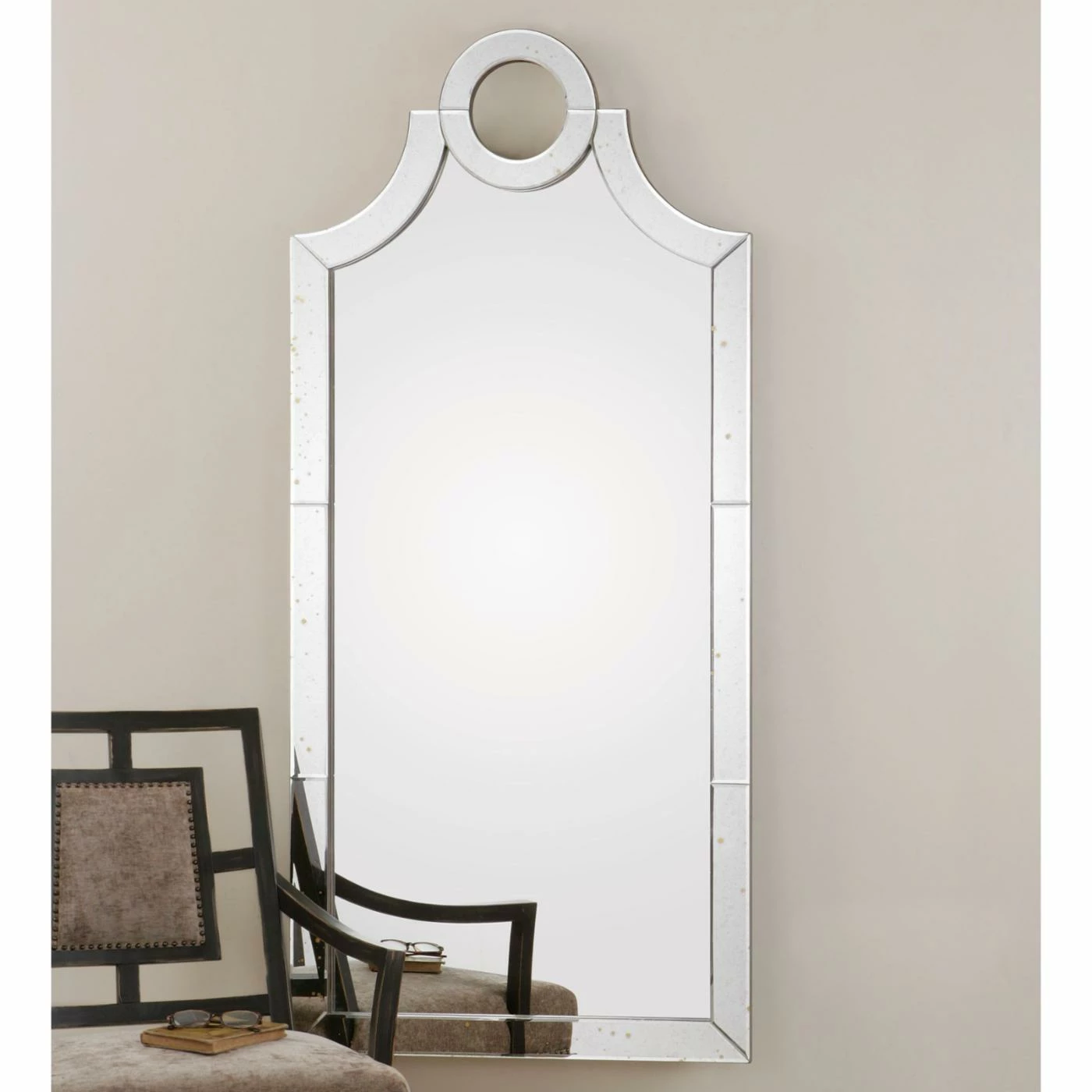Add a flourish to your foyer with the Uttermost Acacius Arched Mirror – 30W x 66H in. This beautifully designed accent piece by artist Carolyn Kinder features a decorative top, lightly antiqued border of beveled tiles, and a highly reflective vertical glass surface perfect for the home entryway or hallway.