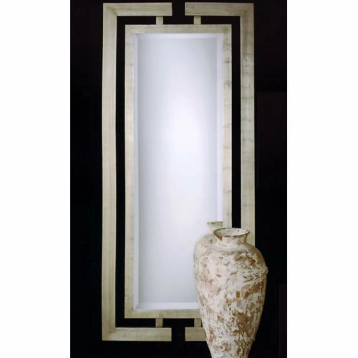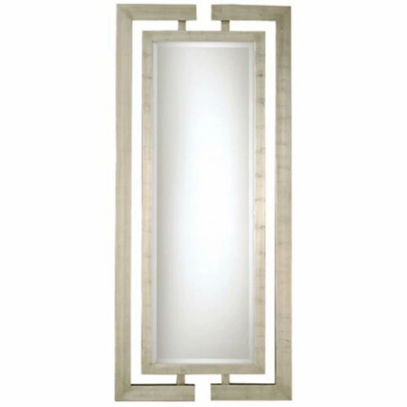 Add modern luxury to your home with the Jamal Beveled Mirror. This contemporary mirror will brighten any room. The large dual frame is attached on the top and bottom by four small strips of wood. The scratched silver finish will catch the eye and reflect your home’s style. This 34W x 76H mirror is perfectly proportioned for today’s larger homes.